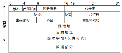 - 首部长度:4bit,单位为 4B,固定长度 20B,因此首部最长 60B