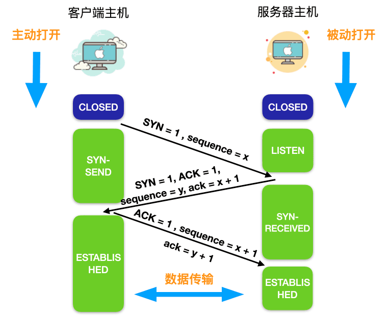 TCP 连接三个阶段,连接建立,数据传送,连接释放