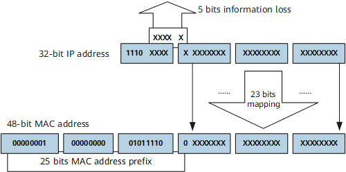 且在最后交付的过程中,需要将组播数据报转为链路层组播以太网帧,因此需要组播 IP 到组播 MAC 的映射: